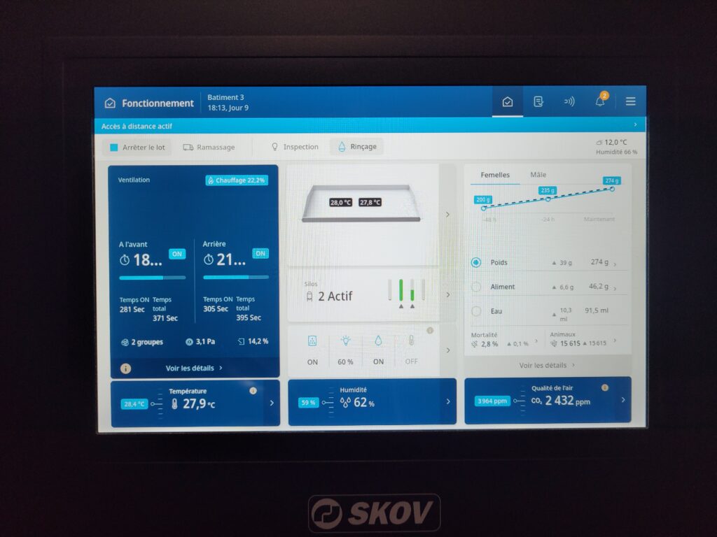 Contrôle de l’humidité et de la température : Pour éviter le stress thermique et les maladies respiratoires, des capteurs ajustent automatiquement le flux d’air en fonction des conditions intérieures et extérieures.