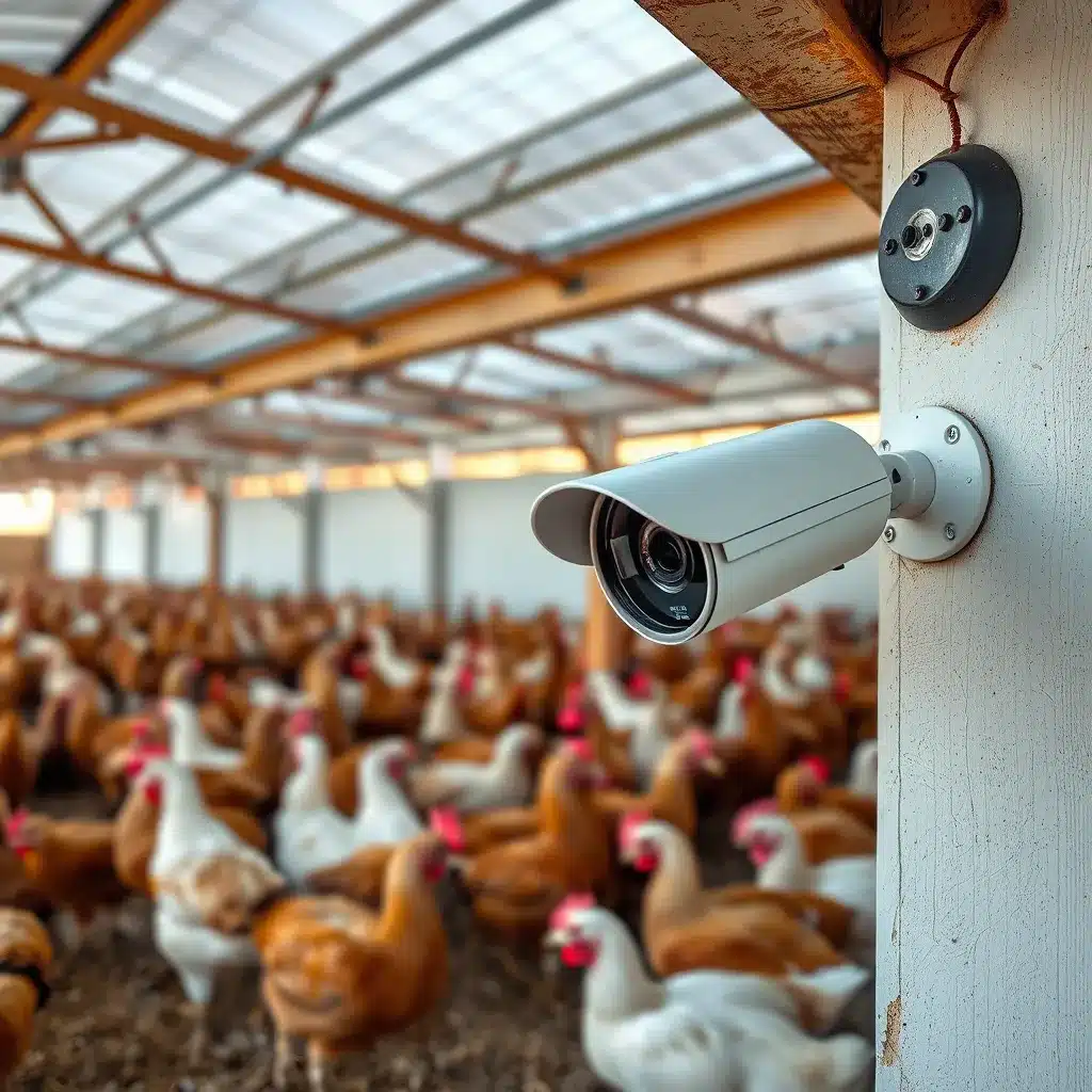 Caméras haute résolution : Caméras installées dans les zones d’élevage pour surveiller les animaux et assurer leur sécurité.